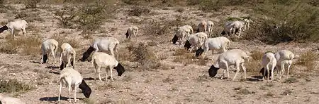 Esta raza pertenece al tipo de razas de ovinas que acumulan grasa en la grupa, además se la reúne con las razas ovinas de pelo, y con las de carne.[2] Posee orejas cortas. Habitualmente su peso oscila entre 35 a 45 kg. Presenta un pelaje corto, liso, y suave, de una característica coloración blanca en el cuerpo y las extremidades, con la cabeza y el cuello negro. A diferencia de otras razas ovinas, no posee lana, solo pelos comunes, los cuales son más apropiados dado el intenso calor de la región de origen. Generalmente pare un solo cordero. No presentan cuernos, aunque algunos ejemplares machos si los poseen, los que los podrían emplear ante chitas y otros predadores. La pigmentación de la cabeza se debe probablemente a dos tipos de selección: la practicada por los criadores, y a la selección natural, como defensa contra la radiación solar intensa.[3]