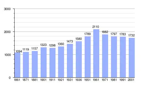 Gráfica de evolución demográfica de Ovodda entre 1861 y 2001 |