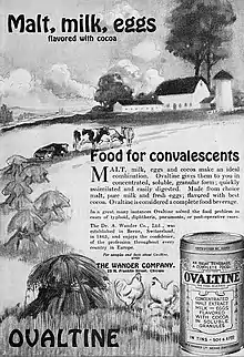 Ovomaltine (también conocida como Ovaltine) es una marca de productos de sabor a leche malteada (excepto en el envase azul en los Estados Unidos), azúcar (excepto en Suiza) y suero de leche. Algunos sabores también tienen cacao. Ovaltine, una marca registrada de Associated British Foods, es fabricada por Wander AG, filial de Twinings que adquirió la marca de Novartis en 2003, excepto en los Estados Unidos, donde Nestlé adquirió los derechos por separado de Novartis más adelante.