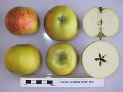 ![]() La variedad de manzana 'Oxford Sunrise' con secciones cruzadas. | ||