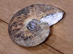 ![]() Fósil de Gleviceras guabalianum de Francia, en exhibición en la Galerie de paléontologie et d'anatomie comparée en París | ||