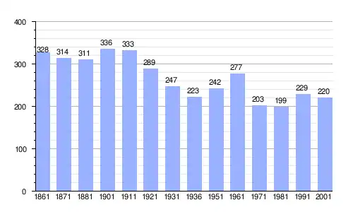 Gráfica de evolución demográfica de Oyace entre 1861 y 2001 |