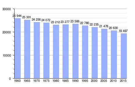 Gráfica de evolución demográfica de Oyama entre 1960 y 2015 |
