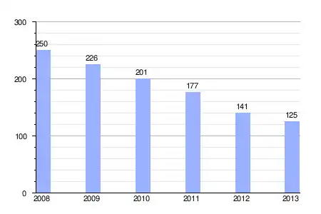 Gráfica de evolución de la deuda viva del ayuntamiento entre 2008 y 2013 |