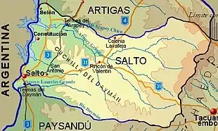 La zona remanente se ubica entre la Colonia Juan Gutiérrez, el rincón de Andrés Pérez, la cuchilla del Arbolito y la cuchilla del Fuego, en las puntas del río Queguay Grande.[6]
