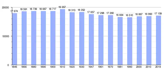 Todos los datos históricos relativos al actual municipio, el siguiente gráfico refleja su evolución demográfica, incluyendo municipios después de efectuada la fusión el 1 de enero de 1977.