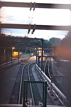 La estación posee, como la mayoría, un andén central. Esta es la última de la "antena" a Anderlues que funciona en "modo" metro. Desde aquí, y hasta Monument, los trenes circulan por tramos compartidos y en vía única.[1]