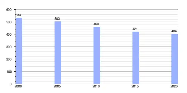 Gráfica de evolución demográfica de Pígara entre 2000 y 2020 |
