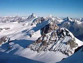 1.ª ascensión | 1 de agosto de 1864, por Jules Jacot con los guías Josef-Marie Perren y Peter Taugwalder (padre) | |