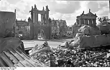 Durante la 2ª Guerra Mundial, el portal quedó severamente dañado en los bombardeos británicos de la noche del 14 de abril de 1945 (noche del bombardeo de Potsdam), el mayor ataque sufrido por la ciudad . En los planes aparecidos en los años cincuenta para eliminar el palacio de la ciudad, el portal de la Fortuna fue también amenazado de demolición. Todo el conjunto debía desaparecer por voluntad de los jefes del Estado y del líder del partido de ese tiempo, Walter Ulbricht, al no cumplir con las premisas de la arquitectura urbana de una ciudad socialista. Este proyecto fue aprobado a pesar de las violentas protestas en noviembre de 1959, finalmente el Pórtico de la Fortuna parecía abocado a su desaparición.