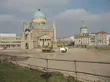 Fue en 2001 con la ayuda de los residentes en Potsdam, que la presentadora de televisión Günther Jauch, en el Mercado Antiguo, la Puerta de Fortuna después de un total de dos años de construcción (la ceremonia de instalación de la primera piedra, se celebró el 8 de septiembre de 2000 en el lugar) como la primera parte de un conjunto de todo el palacio de la ciudad el futuro de nuevo. La reconstrucción fiel es indicado para que un valor de construcción de aproximadamente tres millones de euros, fue hecha, entre otras cosas, con una donación de cemento - y la industria de concreto, para ejemplo, Jauch, con el apoyo de una iniciativa de la publicidad y la abandonó en favor de la reconstrucción de la mayoría de sus regalías. En contraste con la reconstrucción proyectada de antemano de la palacio Potsdamer de la ciudad (donde una política sobre el original), esta ciencia basada en el portal, fue construido con sus esculturas a veces falta en una base histórica de sonido, y de acuerdo con el modelo histórico.