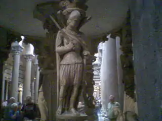 Una de las cariátides simboliza la Ecclesia, y tiene en su base la serie de las cuatro virtudes cardinales personificadas (Justicia, Fortaleza, Templanza y Prudencia), entre las cuales destaca la desnuda Temperanza, que retoma la pose de la Venus pudica. Pero estas virtudes, como se lee en la inscripción del mismo Giovanni, tienen un significado más amplio, como las cuatro partes del mundo, cuatro ríos del Paraíso y las cuatro edades de la mujer. Giovanni creó, de esta manera, una summa del universo enciclopédico de la época.