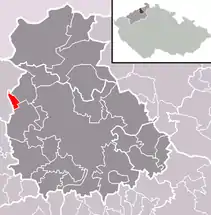 Se encuentra ubicada al noreste de la región, sobre los montes Metálicos, cerca de la orilla de los ríos Bílina y Elba, y del estado alemán de Sajonia.[1]