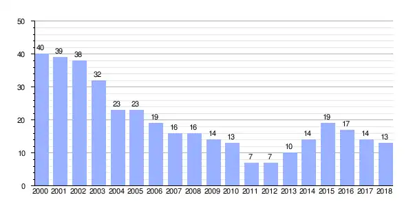 Gráfica de evolución demográfica de Paínza entre 2000 y 2018 |