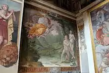 Por Pacheco se sabe que tuvo trató con Federico Zuccaro y que admiró las obras de Miguel Ángel y de Rafael, en los que estudió el dibujo como parte principal de la pintura, aunque en el color, añadía Pacheco, prefirió seguir el estilo de Antonio Allegri da Correggio. Es seguro un viaje de Céspedes a Parma, acreditado por su conocimiento directo de la Piedad pintada por Correggio para la iglesia de San Juan Evangelista, que en el Discurso de la comparación pone como ejemplo de expresividad en las figuras.[15] También en Roma practicó la escultura en cera y ganó fama con una cabeza en mármol de Séneca. Aprendió además la técnica de pintura al fresco, poco practicada en España, con la que, según Baglione, decoró al modo de Polidoro da Caravaggio la fachada de un palacio situado en Via del Corso, y pintó el túmulo del marqués de Saluzzo en la basílica de Santa María en Aracoeli y las bóvedas y muros de la capilla Bonfili, en los que Baglione le atribuye la Creación del mundo con Adán y Eva, cuyo paisaje habría pintado Cesare Arbasia, la Natividad y los profetas de las pilastras además de los evangelistas de la bóveda y las escenas de la vida de la Virgen de los lunetos.[16][17] También Céspedes y Arbasia pintaron al fresco la Anunciación que daba nombre a la capilla, sustituida u oculta a comienzos del siglo XIX por el Descendimiento de la Cruz de Daniele Volterra, que ocupa ahora la pared del altar.[18] De su estancia italiana quedan únicamente estos frescos de la capilla Bonfili en la iglesia de la Trinità dei Monti, la primera de las obras del racionero que se ha conservado.[19]