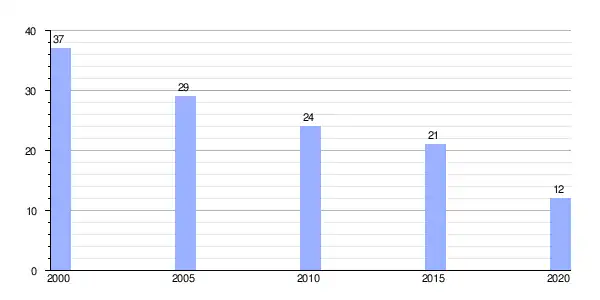 Gráfica de evolución demográfica de Pacios de la Sierra (parroquia) entre 2000 y 2020 |