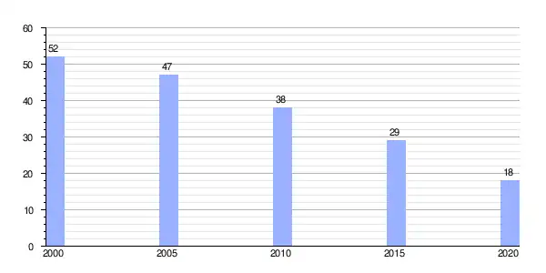 Gráfica de evolución demográfica de Pacios da Serra (aldea) entre 2000 y 2020 |