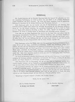 El 26 de enero de 1934,[54][51][53] cuatro días antes del aniversario de su nombramiento como canciller, Hitler anunció la firma en Berlín de un pacto de no agresión con Polonia de diez años de duración.[56][57][58] Firmaron el ministro de Asuntos Exteriores alemán Konstantin von Neurath y el embajador polaco, Lipski.[55][58] El pacto fue ratificado por los dos países un mes después.[55][58]