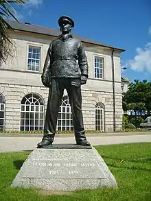 - Una estatua de bronce de Blair Mayne de tamaño menor que el tamaño real se encuentra en Conway Square, Newtownards, y el desvío occidental de la ciudad también se llama en su honor. Monumento de Blair Mayne en Conway Square, Newtownards.