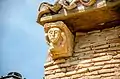 Los canecillos se ubican bajo el alero y muestran temas vegetales, geométricos y figurativos: un porteador de toneles flanqueado de dos serpientes, un hombre desnudo mesándose las barbas, una simia mostrando el sexo acompañada de seres demoníacos, dos serpientes antropomorfas y varios animales.[4]