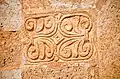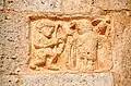 Los seis bajorrelieves, en la fachada, representan varios temas. Uno presenta motivos vegetales (tallos abrazados por anillas que albergan tres hojas cada uno). Otros dos representan escenas de caza. Los otros tres son leones.[4]