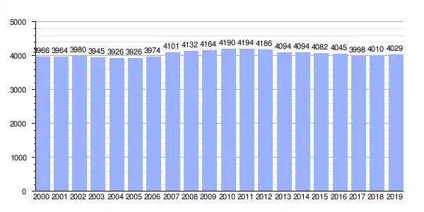 Gráfica de evolución demográfica de Padrón (parroquia) entre 2000 y 2019 |
