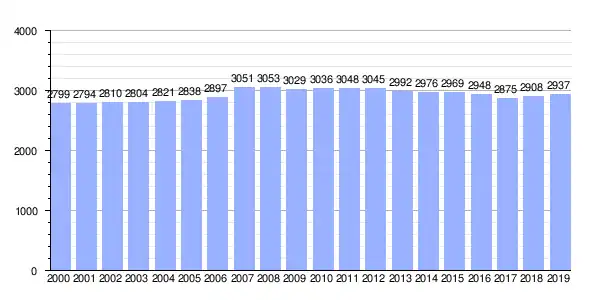 Gráfica de evolución demográfica de Padrón (lugar) entre 2000 y 2019 |