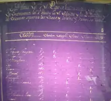 - Curato de Castro: incluía los partidos de Castro (11 capillas), Chonchi (5 capillas), Puqueldón (6 capillas), Queilén (8 capillas), Achao (8 capillas), Meulín (5 capillas) y Tenaún (8 capillas).[5]