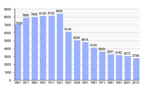 Gráfica de evolución demográfica de Paesana entre 1861 y 2015 |