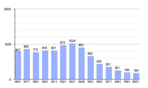 Gráfica de evolución demográfica de Paganico Sabino entre 1861 y 2001 |