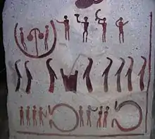 La religión escandinava de la Alta Edad Media está mucho mejor documentada que las antiguas religiones germánicas, gracias especialmente a los textos escritos en Islandia entre 1150 y 1400.[49] Los ornamentos personales de la Edad de Bronce muestran imágenes de sus dioses en carros y grabados rupestres, a lo largo de Escandinavia al sur de Trondheim, el Uppland sueco revela dioses, sacerdotes y diversa fauna.[50] Se sabía que el sacrificio era simplemente una parte de las festividades en las que los diversos dioses recibían obsequios, o siempre que uno trataba de predecir e influir en los eventos del año siguiente. La relación entre dioses y humanos se entendía como una que se asemejaba a la conexión entre un gran hombre y los sumisos a él; por lo tanto, era importante confirmar rutinariamente la relación con los dioses a través de regalos. Los sacrificios de sangre se utilizaron en tiempos de crisis y durante las vacaciones.[51] Los relatos del siglo IX sobre la Rus vikinga de Novgorod (quizás el enclave más lejano al oriente que manifiesta las prácticas religiosas germánicas) incluyen el sacrificio de "hombres, mujeres y ganado" a sus deidades.[52]