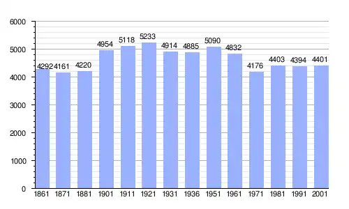 Gráfica de evolución demográfica de Paglieta entre 1861 y 2001 |