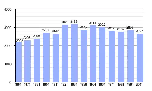 Gráfica de evolución demográfica de Pago Veiano entre 1861 y 2001 |