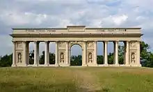 - el Rendezvous o Templo de Diana (Randez-vous / Dianatempel): un pabellón de caza en forma de arco clasicista edificado entre 1810 y 1813 en conmemoración a la labor diplomática del príncipe Johann I Josef durante el tratado de paz de Presburgo. En la parte superior hay un conjunto de estancias en origen destinadas al reposo de los cazadores.[3]