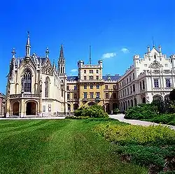 - el castillo y el pueblo de Lednice (en alemán: Feldsberg).