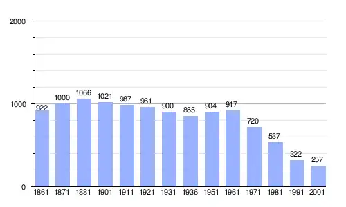 Gráfica de evolución demográfica de Paisco Loveno entre 1861 y 2001 |