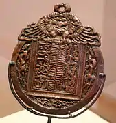 - Salvoconducto oficial en idioma mongol (alfabeto 'Phags-pa): "Por el poder del cielo eterno, el emperador ordena. Quien no respete [al portador] será culpable de delito."