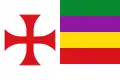 «Bandera rectangular de proporciones 2:3, formada por dos franjas verticales iguales, blanca con cruz del temple roja al asta y cinco franjas horizontales iguales al batiente, siendo desde la superior a la inferior verde, morada, amarilla, roja y blanca»BOCyL nº 212. 31 de octubre de 2002.[5]