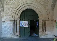 - Tiene siete calles, separadas por medias columnas con fuertes decorados de labores platerescas y tres cuerpos; la calle central ha perdido los marcos originales en el primer y segundo cuerpo, sustituyéndolos por otros barrocos. En medio del mismo, detrás de una hornacina del siglo XVIII, está la imagen de la Virgen del Templo, magnífica talla románica realizada entre 1200 y 1220; tiene 85 centímetros de altura. La Virgen está sentada y tiene un niño en el regazo.