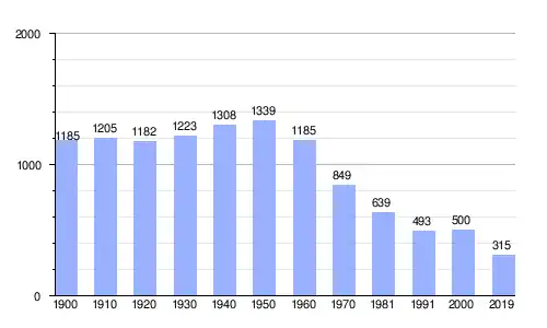 Gráfica de evolución demográfica de Pajares de la Lampreana entre 1900 y 2019 |