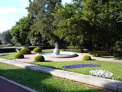 Corresponde al pabellón cuadrangular construido durante la Exposición Universal por el arquitecto de la Casa Real, Juan Moya.[11]
