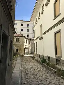 Destaca la cuidada composición de la entrada principal que se produce por la fachada norte, a través de una escalinata exterior de dos tramos simétricos que convergen en una meseta cubierta por una balconada clásica apoyada en dos columnas toscanas. La otra entrada se localiza en la fachada oeste, con escalinata protegida por un pórtico que cubre también el paso de vehículos, y sobre el cual se dispone una amplia terraza con balaustrada de piedra.