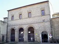 El edificio, de estructura ligera y austera, se caracteriza por su elegante vestíbulo, donde encontramos un techo formado por bóvedas cruzadas y un pórtico de madera del siglo XVI que conduce al jardín.