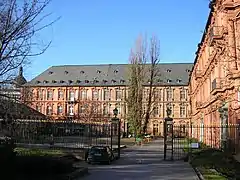 - Esta obra contiene una traducción derivada de «Electoral Palace, Mainz» de Wikipedia en inglés, publicada por sus editores bajo la Licencia de documentación libre de GNU y la Licencia Creative Commons Atribución-CompartirIgual 3.0 Unported.