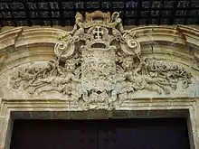 - Portada central o del Obispo: obra del siglo XVIII con decoración muy profusa en su dintel, que utilizaba el obispo para salir del palacio a pie.