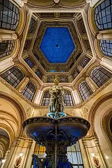 El arquitecto encargado, Heinrich von Ferstel, demostró su talento a la altura de los tiempos al dominar la superficie irregular del edificio con el uso más favorable del espacio imaginable. Los requisitos prácticos se combinan con los artísticos para formar una composición magistral. Ferstel supo diseñar las salas del banco central, los dos salones de la bolsa, el pasaje con el bazar y el café según su finalidad, manteniendo un estilo uniforme.