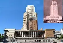 Si bien el edificio ya había sido habilitado, e incluso fue sede del V Congreso Panamericano de Arquitectura. El mismo estaba todavía inconcluso, faltaba el revestimiento exterior de ladrillo, la construcción de las alas laterales, el atrio, las explanadas y el garaje subterráneo los cuales comenzaron a ser construidos a mediado de los años cuarenta.[3]
