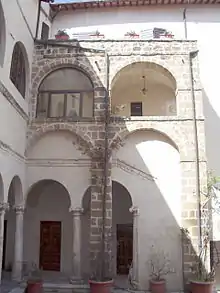 Desde el patio, una pequeña escalera conduce al pórtico de entrada del edificio que alberga el Museo Diocesano de Arte Sacro. En el lado opuesto, otra escalera conduce a la entrada al Museo Arqueológico.