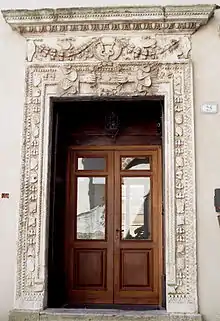 La entrada se realiza a través de una primera rampa que conduce a un pórtico de arco redondo, más allá del cual hay otra rampa corta que da acceso al patio interior, donde se encuentra la cisterna de un característico estilo renacentista, en que se encuentra la logia. Se enfrenta a un lado, con arcos redondos que descansan sobre columnas con capiteles jónicos.