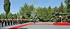 - Guardia de honor formada por las Fuerzas Armadas de Uzbekistán en la explanada de la residencia.